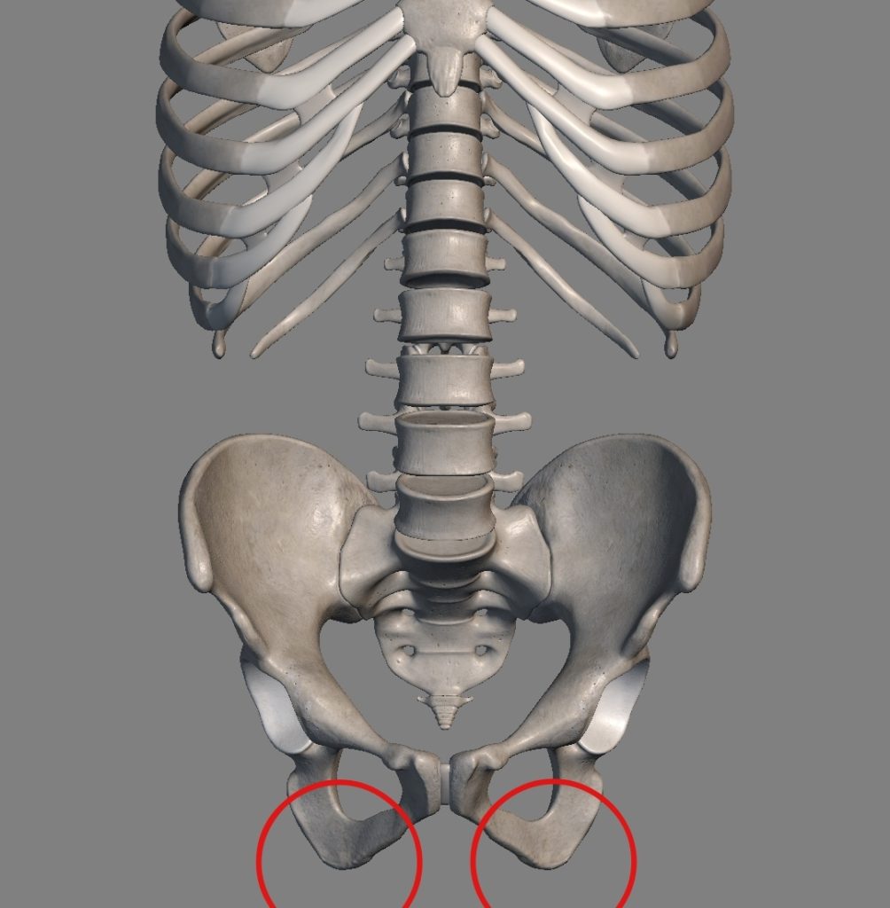 上記を繰り返すことでお尻のところにある硬い骨が見つかると思います。