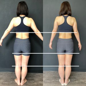 どちらがビフォー、アフターか見てすぐわかるほどの変化!全体的に引き締まり、ヒップも上がっています?