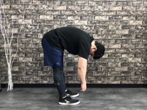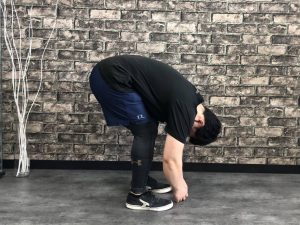 ✅足は腰幅に立ち膝を軽く曲げながら前屈していきます。