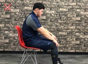 ✅膝が伸びすぎず90度前後になるように浅めに椅子に座ります。