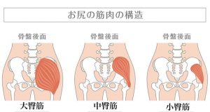 お尻は主に大殿筋、中殿筋、小殿筋の3つの筋肉からなっています!