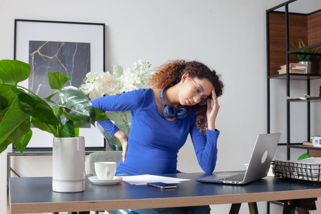 長時間の中腰姿勢や猫背が続くと、腰や背中の筋肉が緊張し続け、腰を支える筋力が弱り、腰を痛めてしまいます。