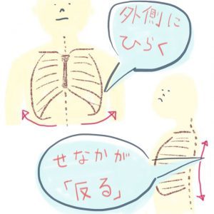 現代人には呼気が十分にできている方が少なく、それに伴い肋骨が開いたままの状態の人が多いようです。