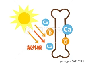 ⇒日光浴をすることで、体内でビタミンDも作られます。