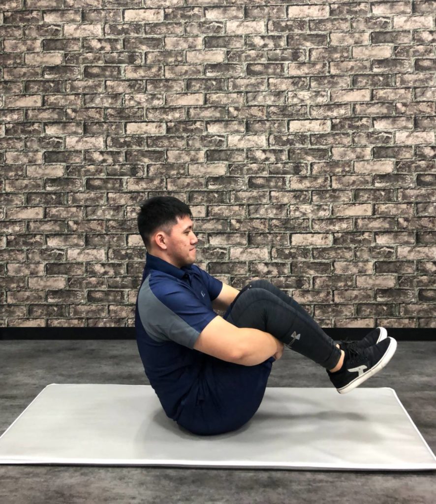 なるべく太ももはお腹に近づけ、身体を丸めた状態をキープするのがポイント?