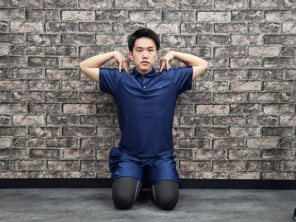 ・そのまま肘を限界まで上に上げます