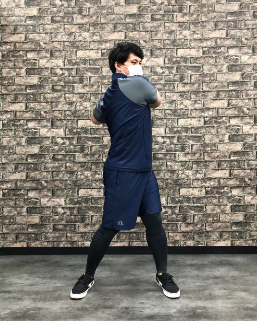 ✅そこから斜めに腕を動かしながら身体をひねり、元に戻るを繰り返します