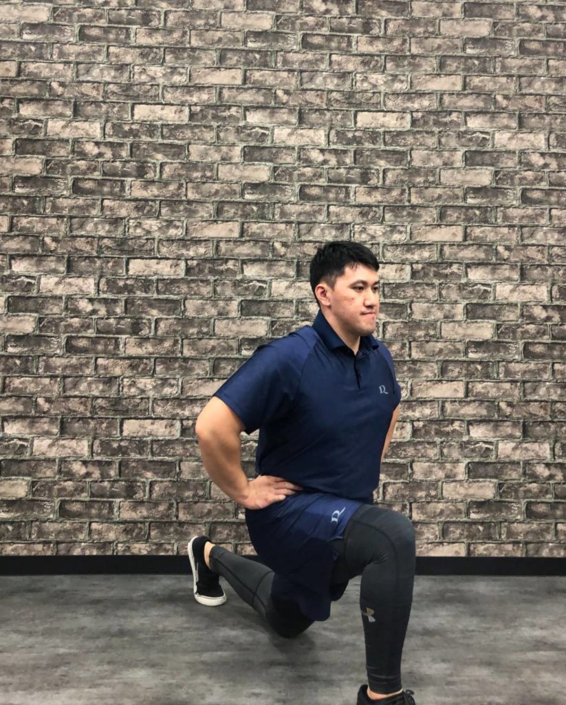✅そこから片脚を後ろに踏み出ししゃがみましょう。