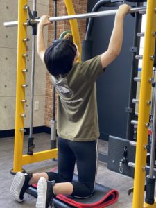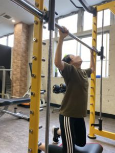 バーが胸に付くように肘を真下に引き切る事がポイントになります😊