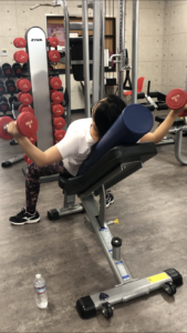 私はお客様と同じダンベルフライという種目を3キロのダンベルで15回〜20回を3セットほど週に1度行っています。