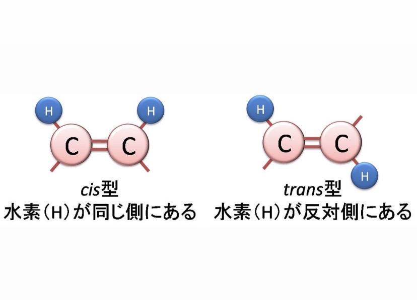 不飽和脂肪酸には、結合の仕方が違うシス型とトランス型があります。脂肪酸は、細胞膜の構成要素になっているのですが、細胞膜の中にこのトランス型が紛れ込むと細胞膜が弱くなり、その結果、身体に様々な悪影響を及ぼします。