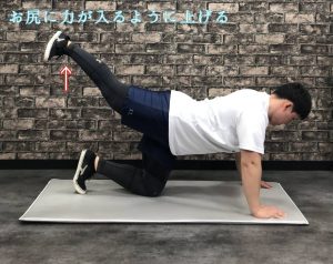 ✅四つん這いになり片足を真っ直ぐ伸ばします。