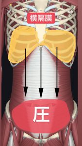呼吸をする事で、確かに下向きに圧はかけられますが、このままだと様々な方向に圧が抜けてしまいます。