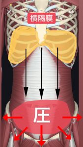 腹圧をかけるには、呼吸をする事が大事になってきます。息をしっかり吸うことにより、横隔膜が下がり、腹腔に対して圧がかかるからです