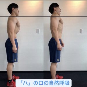 「シュ」の口の形でしっかりと息を吐き切り、「ハ」の口の形で大きく息を吸います。