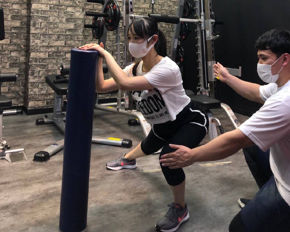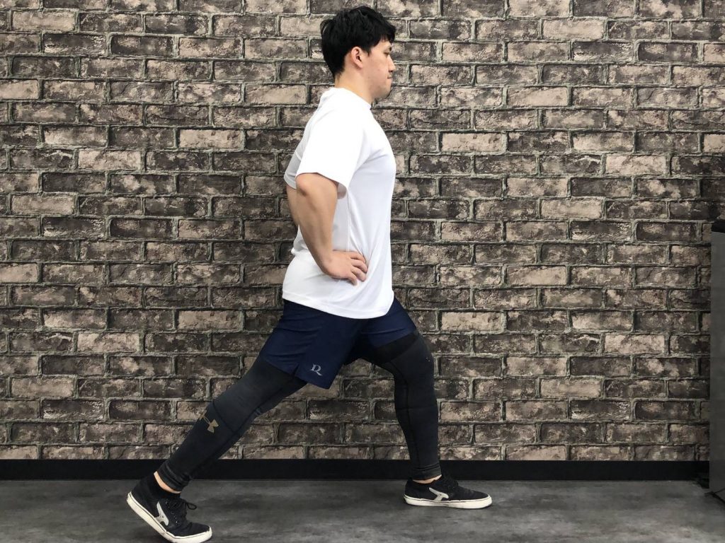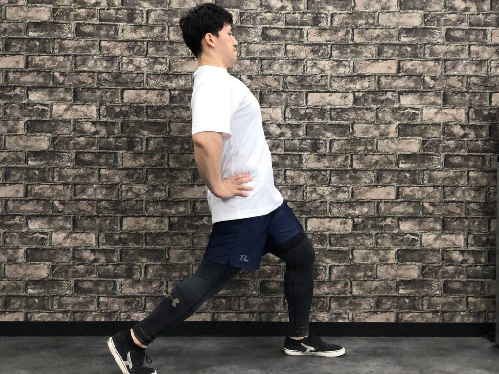 美脚トレーニングにはスクワットなど股関節を曲げる種目の他、股関節の前側を伸ばす種目も取り入れています。