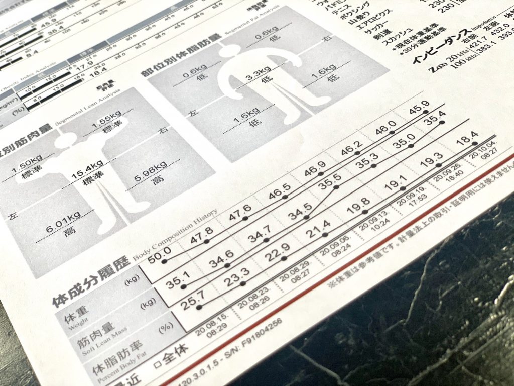 現時点でウエストは-6.2㎝,体重は-4.1kg,体脂肪率は-7.3%です。体脂肪率の落ち方が顕著ですね?(InBodyの結果はこちら↓)