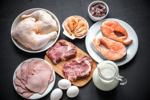 たんぱく質は主に、肉や魚、卵や乳製品、大豆製品に含まれています