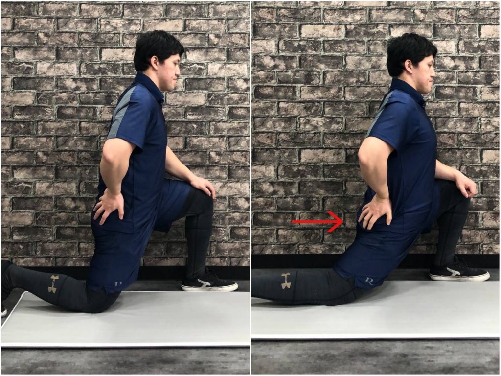✅片膝立ちになり伸ばす方の脚を後ろに伸ばします。