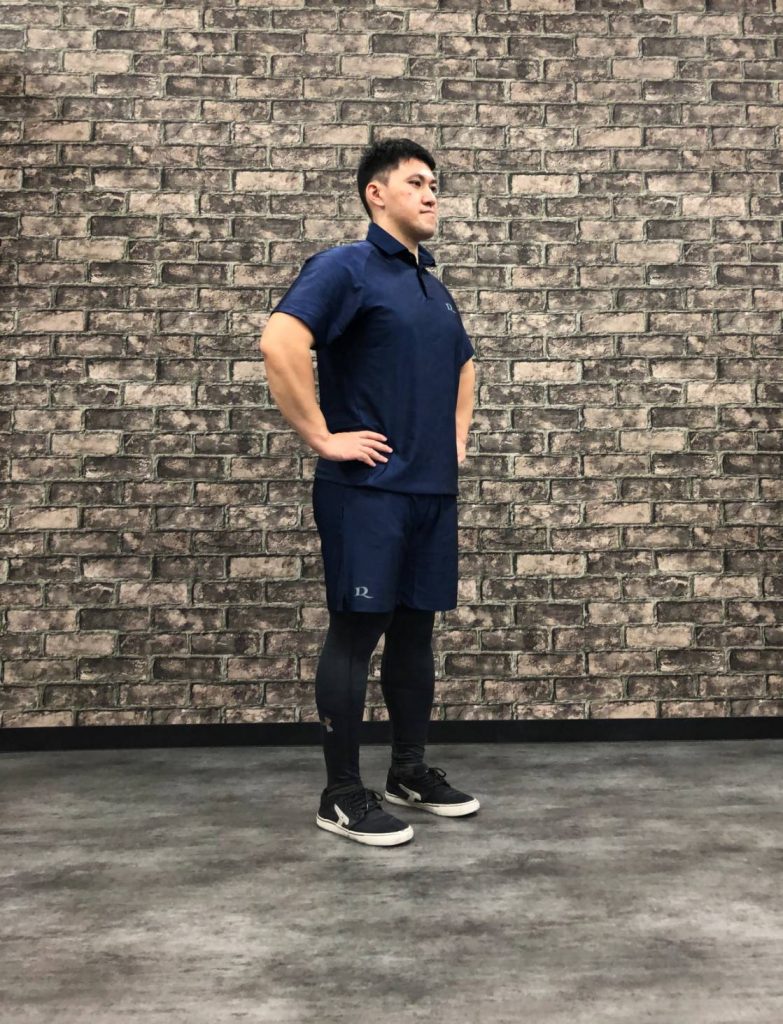 ✅足は腰幅で爪先は真っ直ぐ前に向けて立ちます。