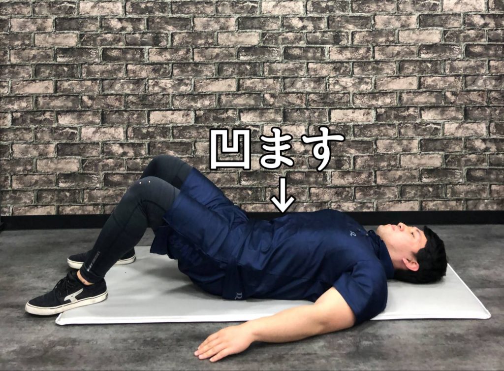 ▼凹みしつつも呼吸を止めないように30~60秒キープします。