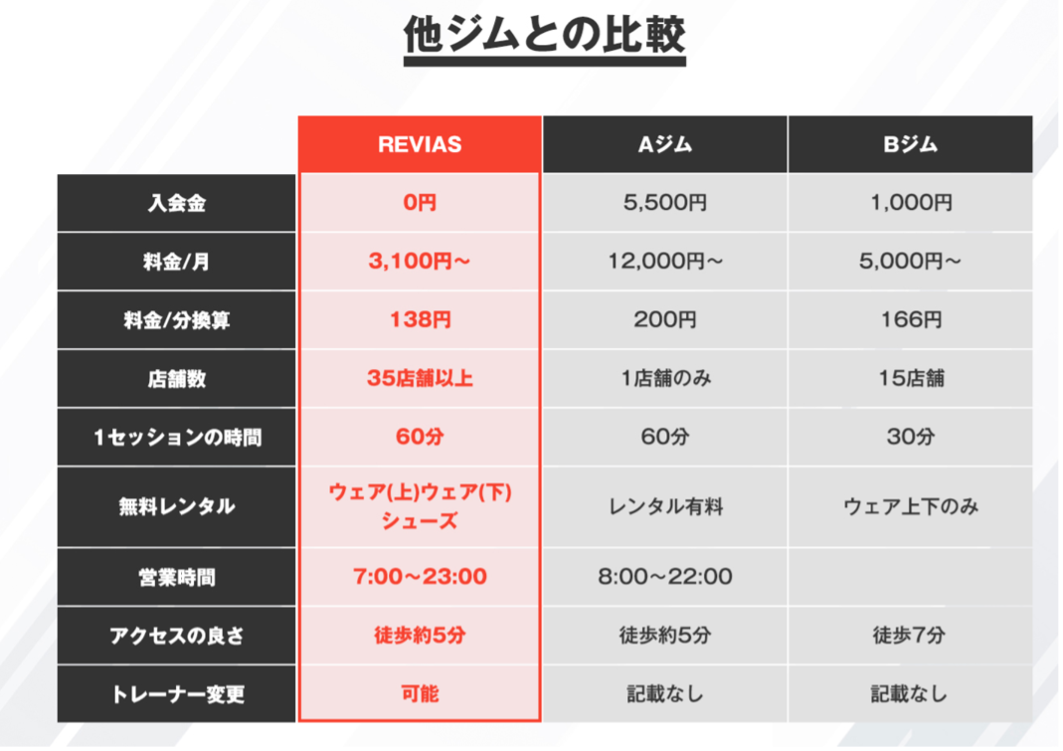 他社ジムと比較しても入会金は0円、トレーニング代金はお値打ちな価格になっております。