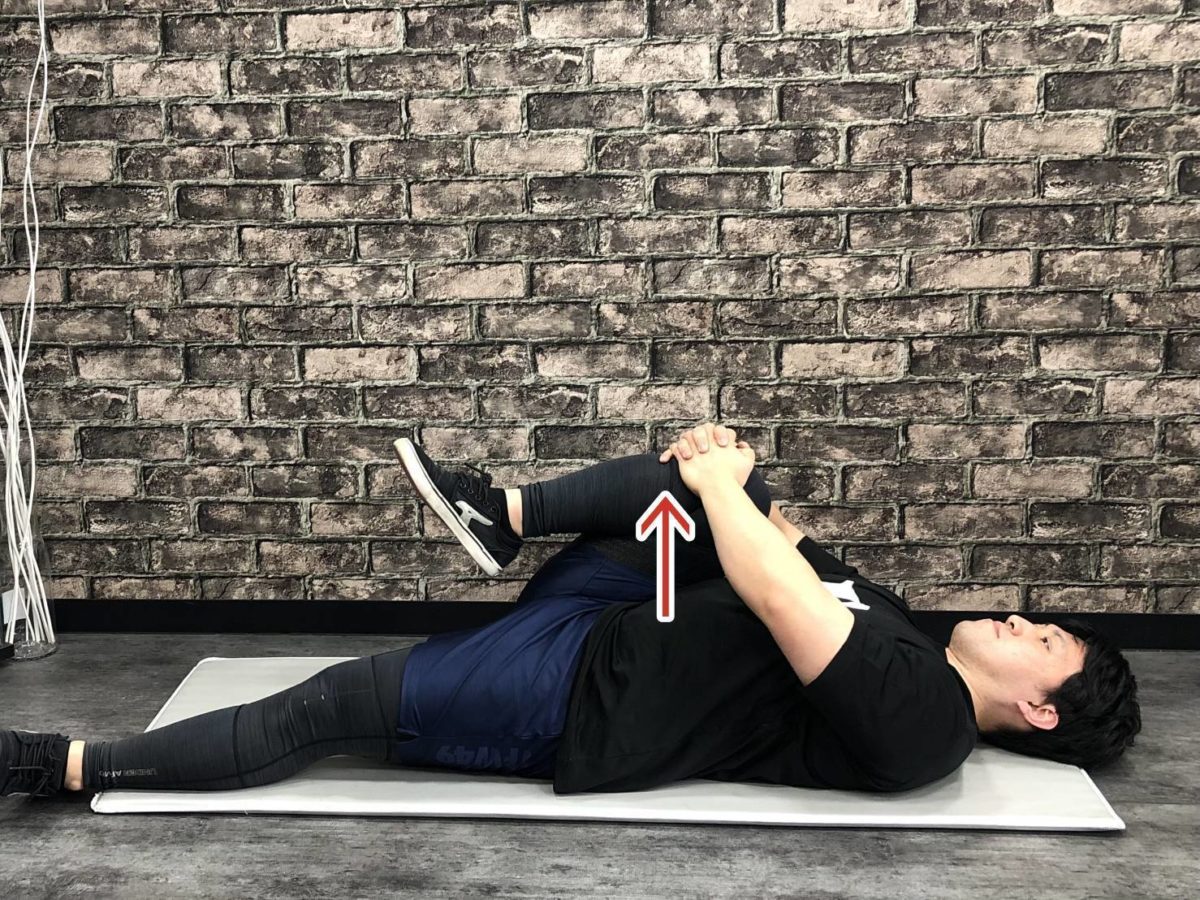 ①,頭からカカトが真っ直ぐになる様に横向きに寝ます