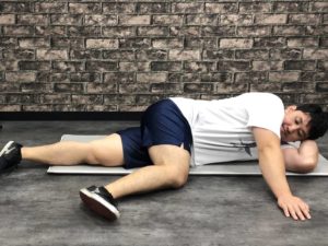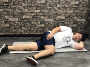 ✅大きく深呼吸をし脱力したら、金魚運動のように腰からお腹を左右にゆすっていきます。