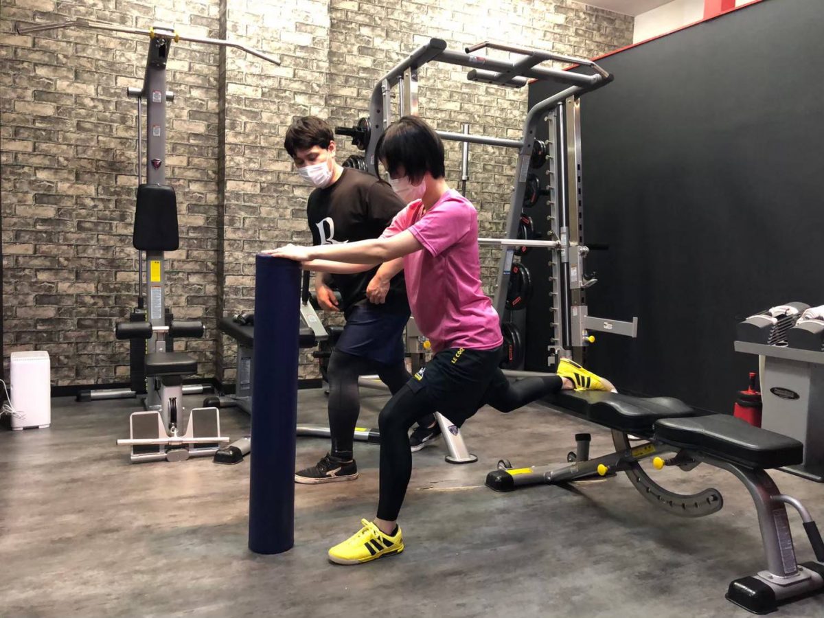 そのためトレーナーが動きを誘導したり、バランスシューズなど特殊な器具を使って立ち方を意識しやすくしながら行っております。