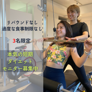 今回のこちらのダイエットモニターは、そんなお悩みを抱える方をプロのパーソナルトレーナーが徹底的に支える3ヶ月間のダイエット計画になります。