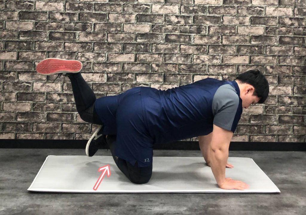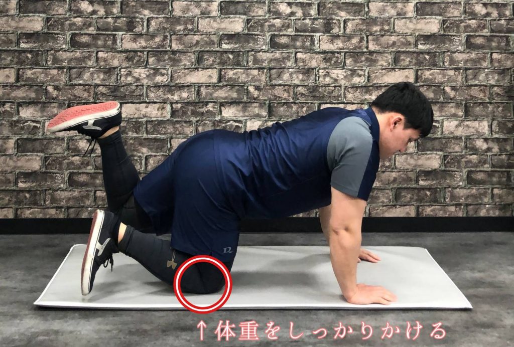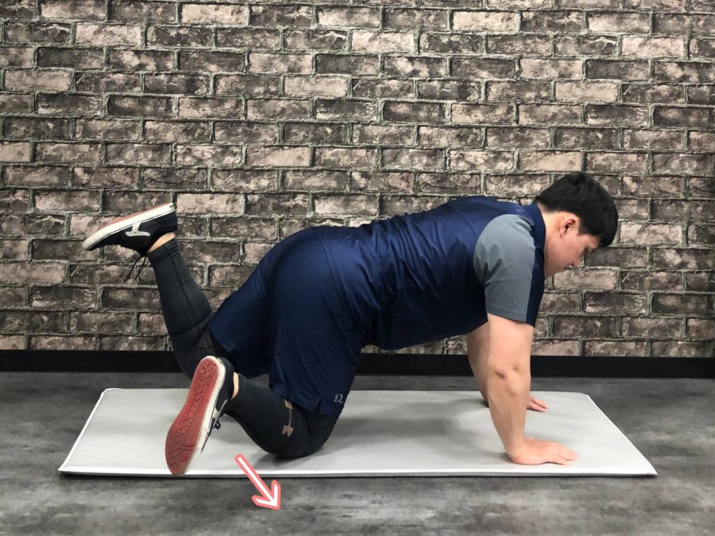 ✅四つん這いになり片足を真っ直ぐ伸ばします。