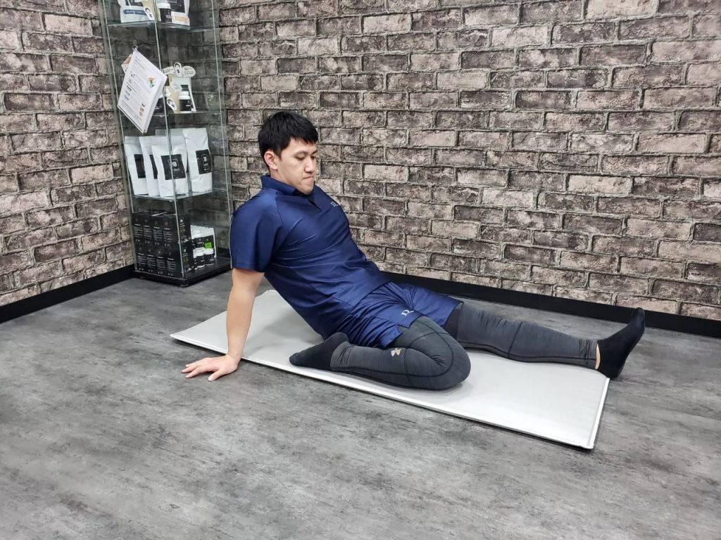①床やマットに横向きに寝ます