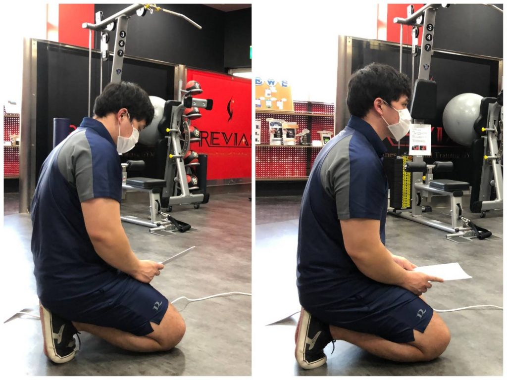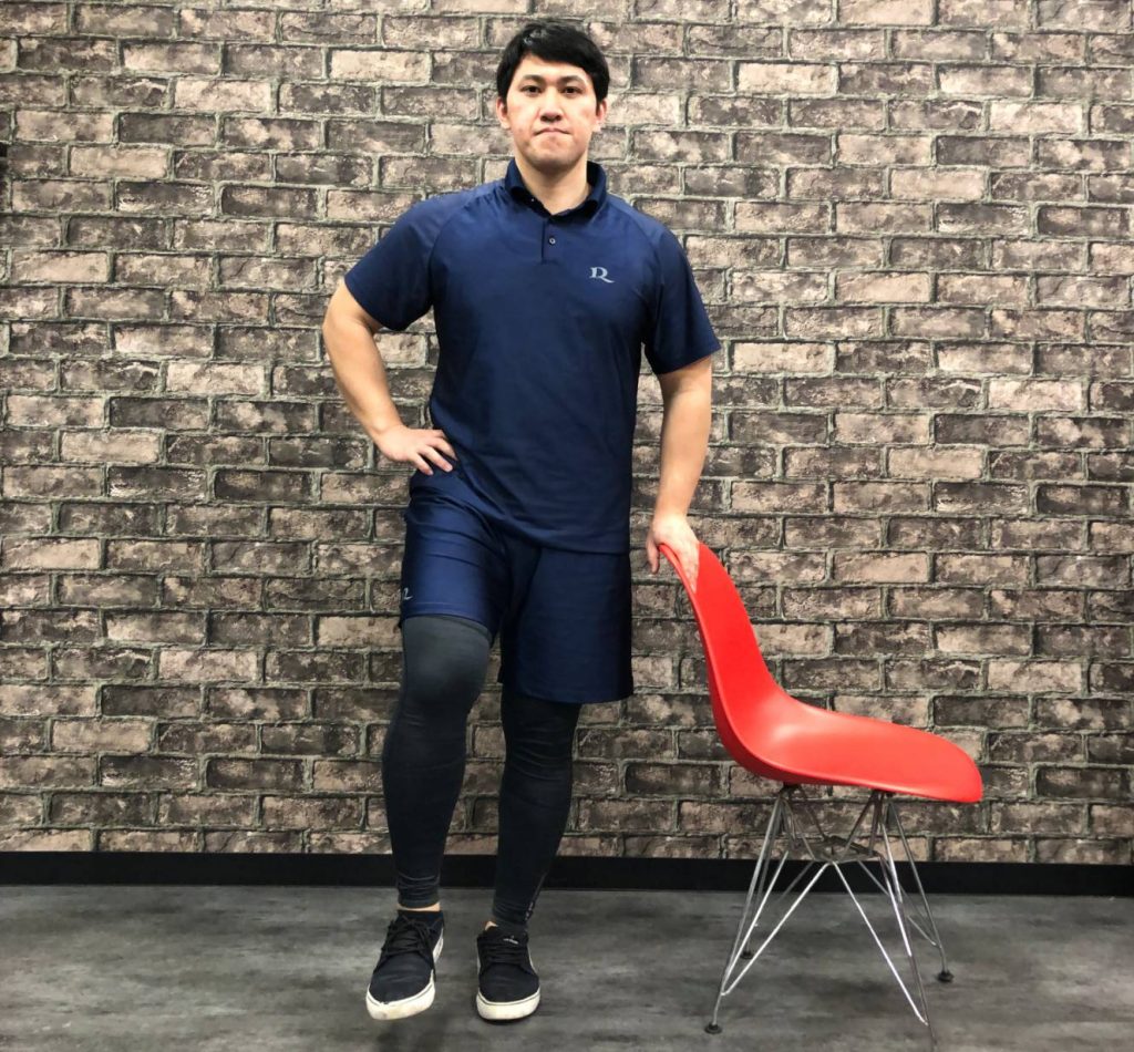 ✅片膝立ちになり伸ばす方の脚を後ろに伸ばします。