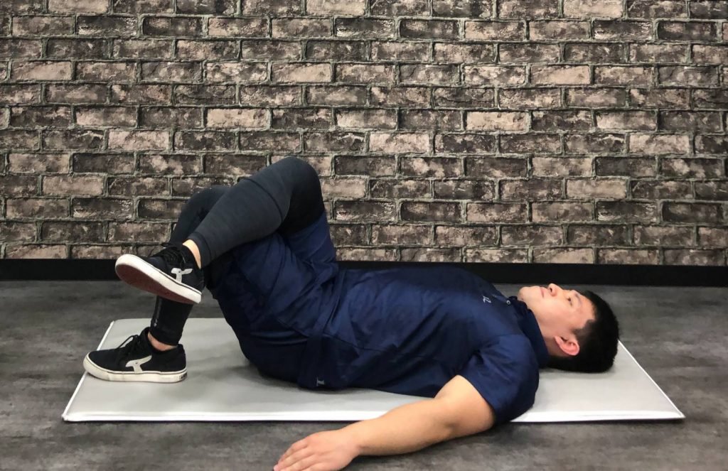①マットや床に横向きに寝ます