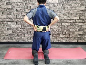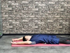 ・タオルが骨盤に当たるように仰向けになります