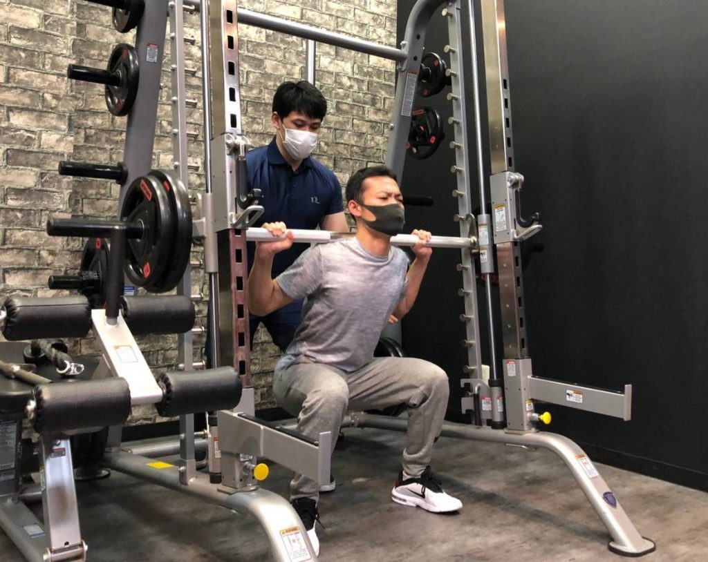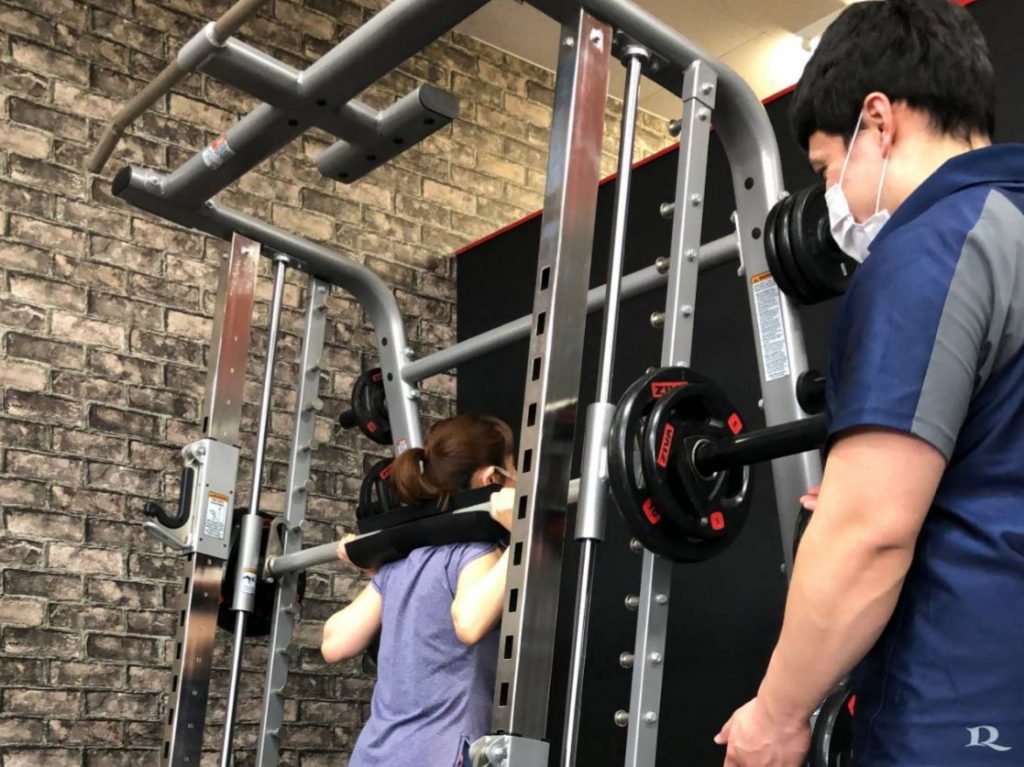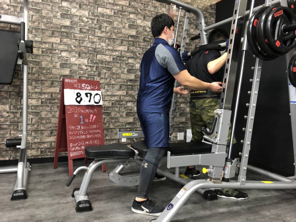 後ろや横でトレーナーがフォームを修正しながら皆さんトレーニングに励んでいます!