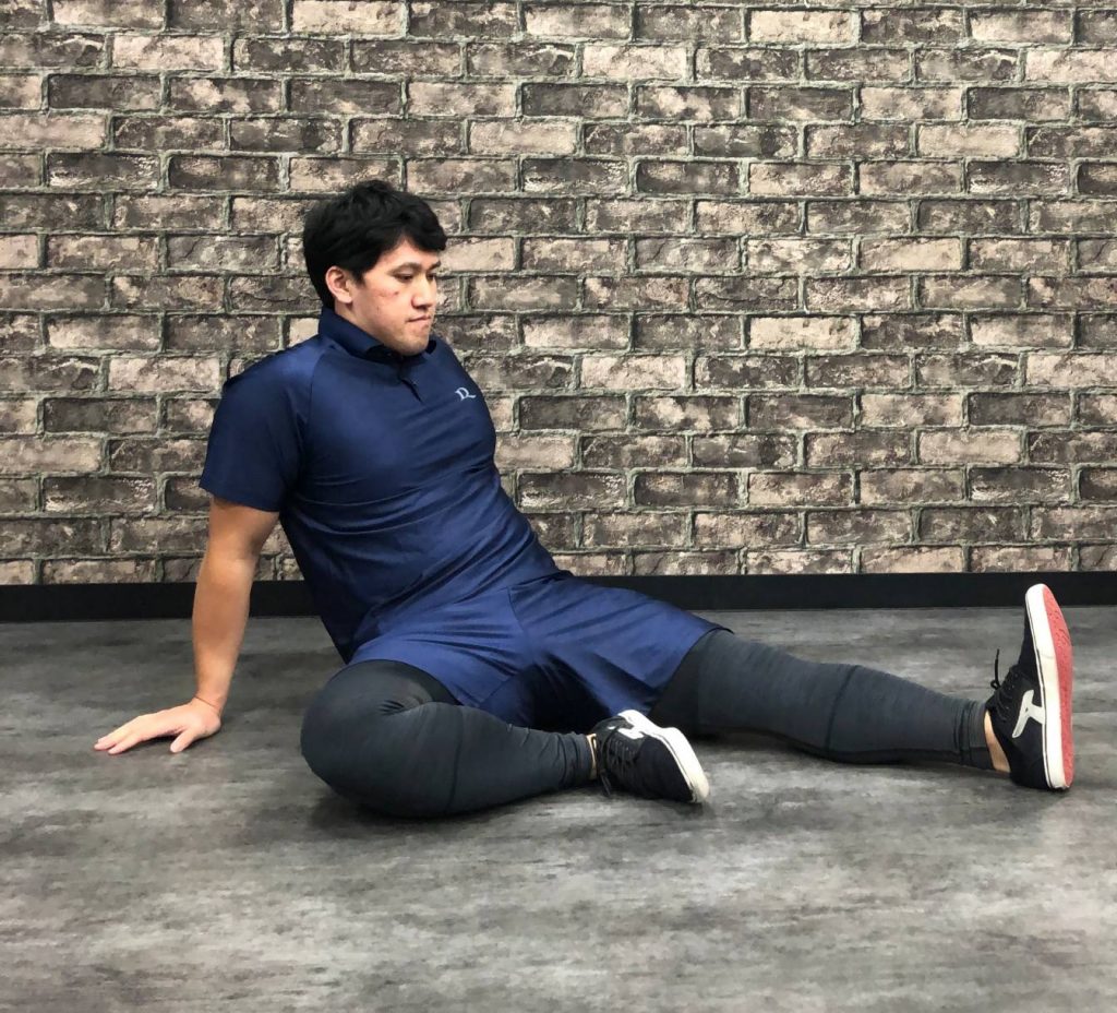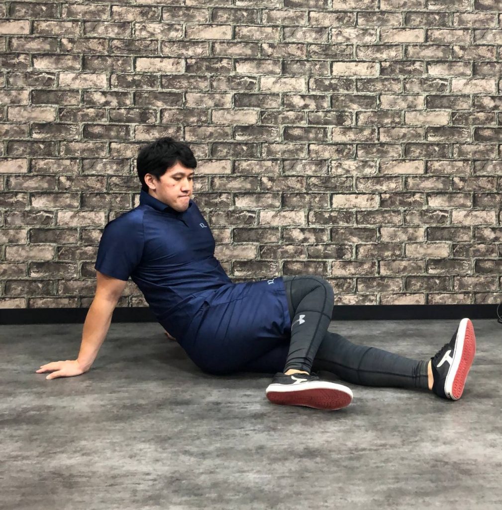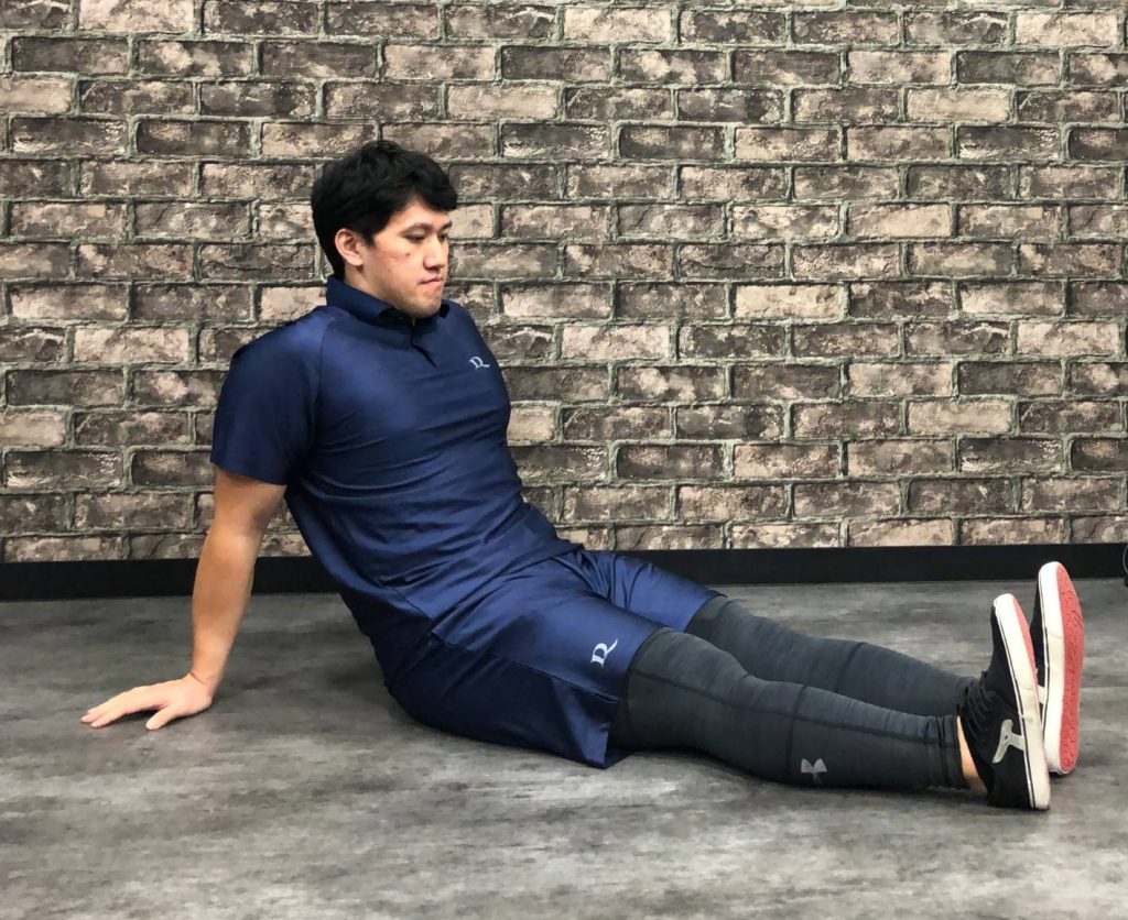 ✅足を伸ばし体を少し後ろに倒し手で支えます。