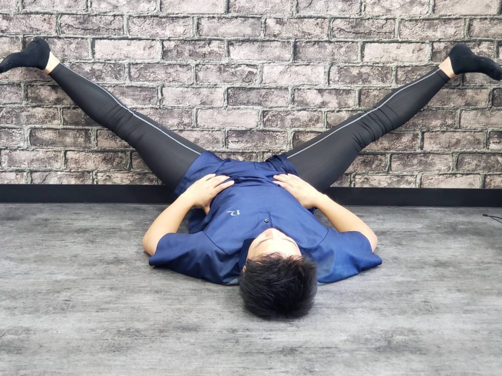 ・壁にお尻を向け仰向けに寝ます