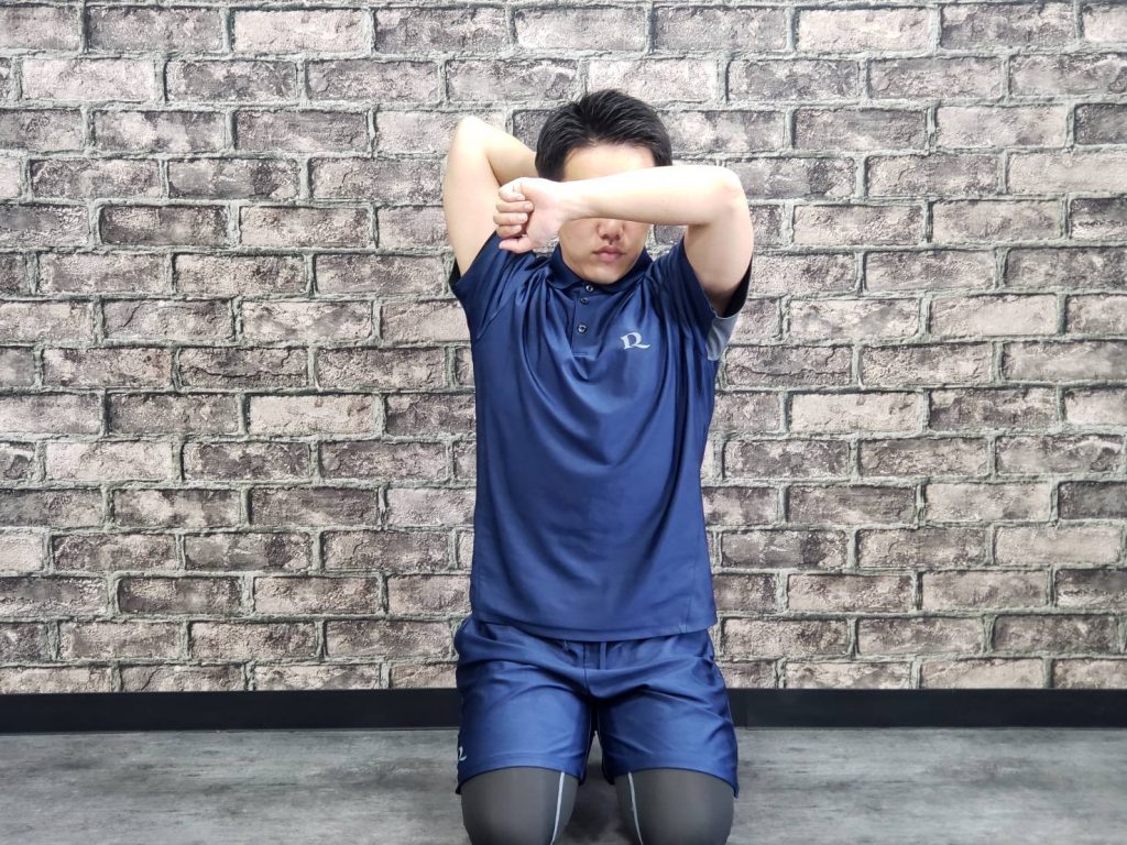 動作自体は普段の動作とあまり変わりませんが、腰幅程に開いている脚を閉じて足の裏同士をくっつけて動作を行います。