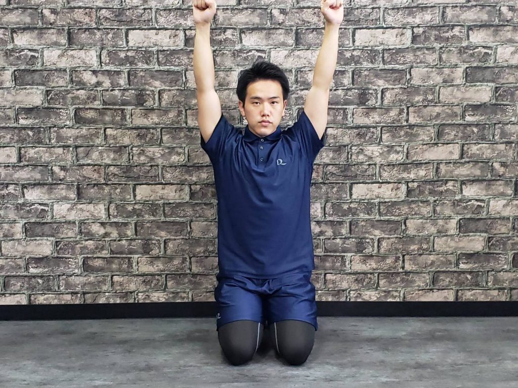 通常の腕立て伏せの手幅ではなく人差し指と親指で三角形を作れる位近くにして行います。