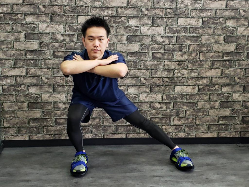 動作自体は普段の動作とあまり変わりませんが、真ん中の位置に来た時にワイドスクワットを行います。