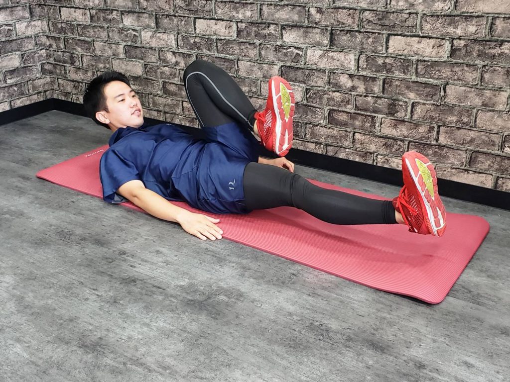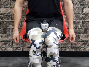 ・膝をそろえてイスに浅く座り、両ふとももにぺっとボトルを挟み押し潰すように力を入れそのまま10秒キープする