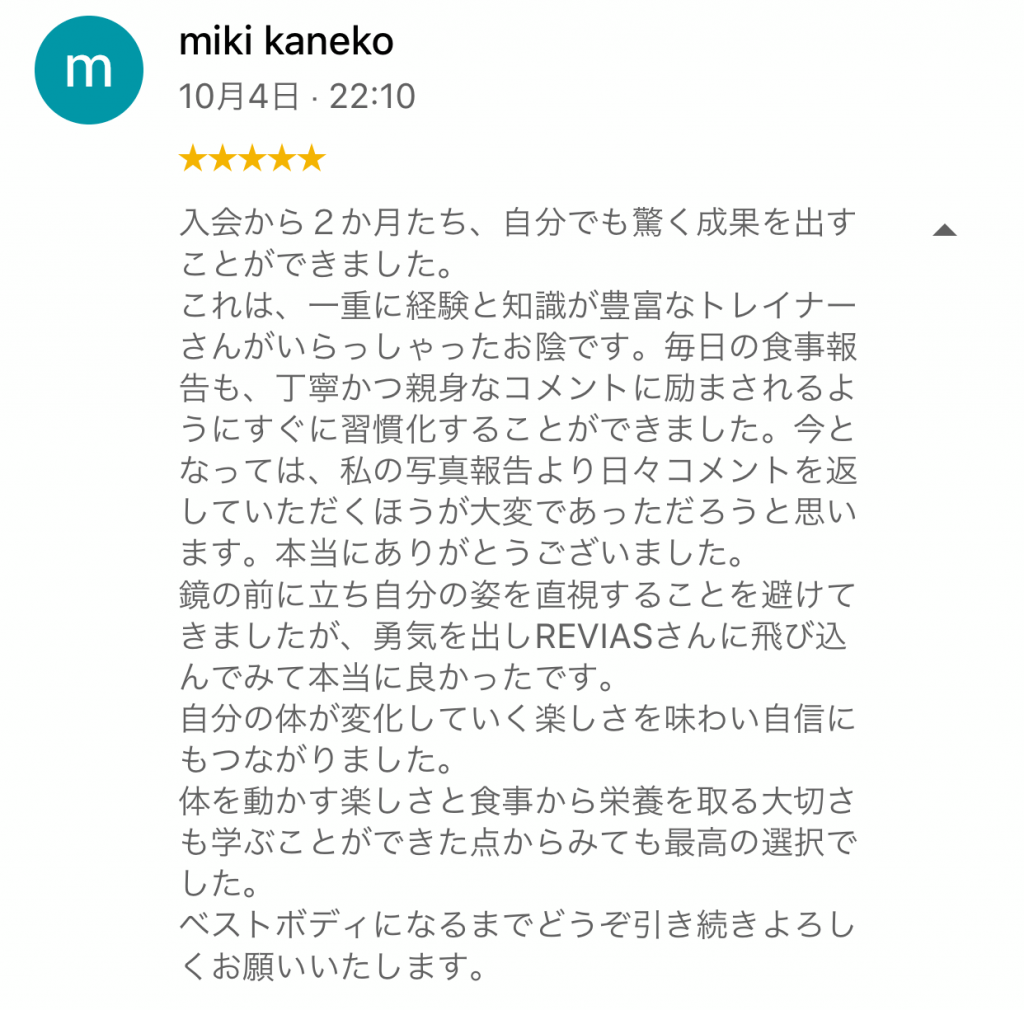 REVIAS三鷹・調布店ではお食事やトレーニング以外にも皆さまの無意識の内にやってしまっているクセなど、日常での気をつけていただきたいポイントなどもアドバイスをさせていただいております。