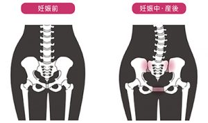 これは『リラキシン』というホルモンの分泌により全身の靭帯や関節の結合部が緩み、骨盤の結合部(仙腸関節や恥骨結合)も緩みます。