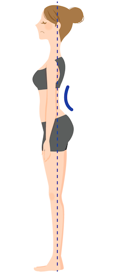 骨盤が前傾してしまい、前傾のままだとバランスが取れないので、腰が反るように後ろに重心をかけて、バランスを取ろうとします。