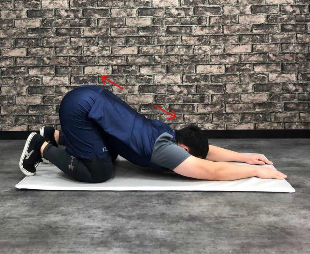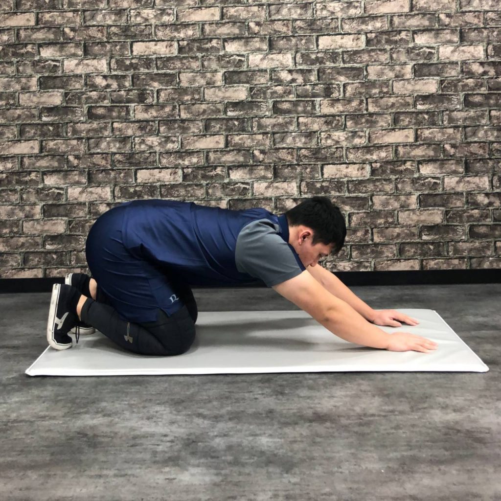 ・仰向けに寝て両手を頭の後ろもしくはこめかみに添えます